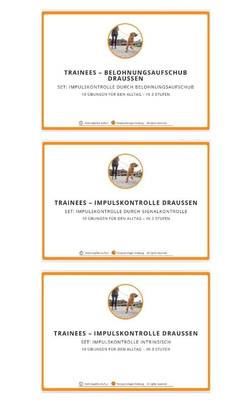 Dieses Trainee-Set bietet alltagsnahe Übungen für drinnen und draußen, mit denen Sie die Frustrationstoleranz Ihres Hundes gezielt und strukturiert fördern können. Ideal für praktische Trainingsimpulse im Alltag und zur schrittweisen Entwicklung innerer Gelassenheit.