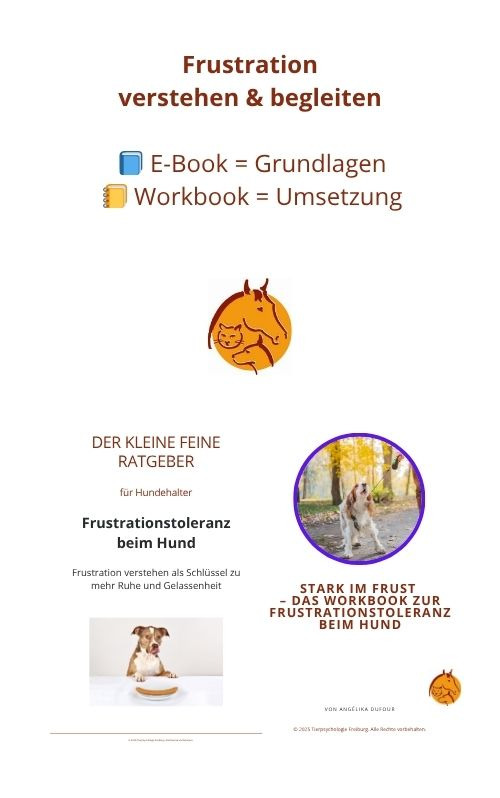 Diese Kombination aus E-Book und Workbook vermittelt fundiertes Wissen zur Frustrationstoleranz beim Hund und ihrer Bedeutung für stabiles Verhalten im Alltag.